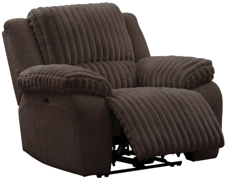 This power recliner features rich chocolate upholstery and plush cushioning for superior comfort. With the touch of a button, you can adjust to your ideal position. Built-in USB ports add convenience, making it a great choice for relaxing while staying connected.Read More