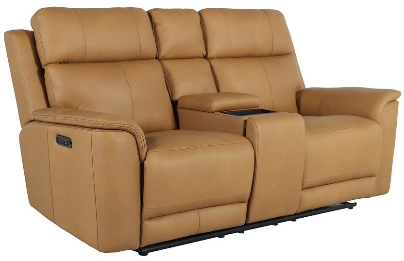 Experience style and comfort with the Vogue Toffee reclining group. The well-constructed frame is upholstered in a beautiful top grain toffee leather. Console features storage with hidden cupholders and USB-charging. All three pieces of the set are complete with power reclining headrests making it easy to get comfortable.Read More