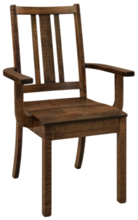Features a straight slat-back design and squared armrests, crafted from maple wood. Customizable in a variety of wood finishes, it delivers classic style and everyday comfort without upholstery. It’s a durable, timeless choice for casual or formal dining settings.Read More